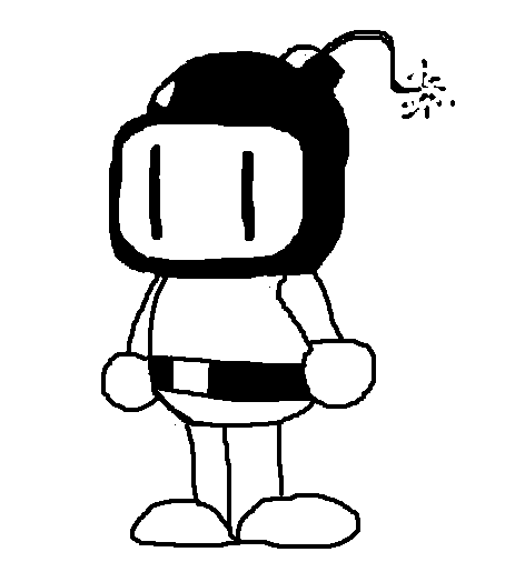 This is a bomberman about to be hit in the head by a bomb from another bomberman. That's such a great game!
