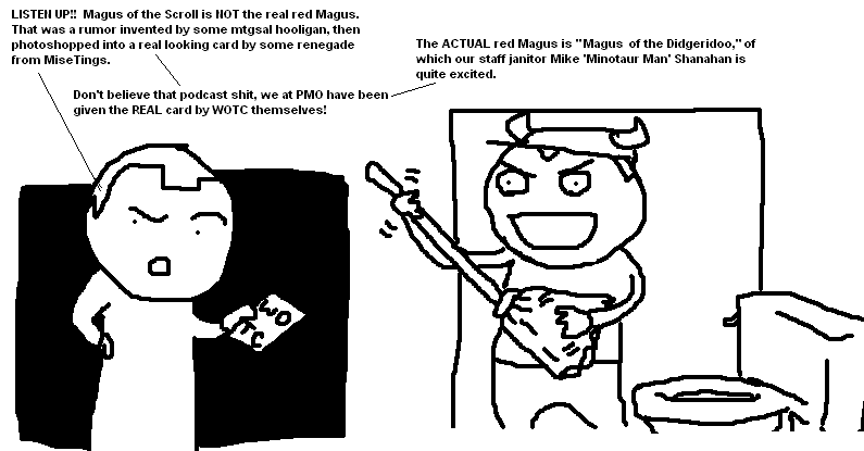 The preceding announcement was just a joke; Mike Shanahan is actually not excited. He's pissed because in the current format there aren't enough minotaurs to take advantage of the new Magus.