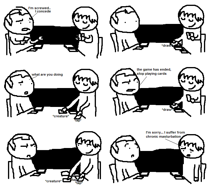 he does it when he wins to prove you had no chance, and does it when he loses to prove his loser deck contains awesome cards