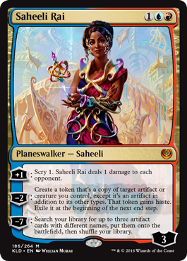 Saheeli Rai: A token copy of an artifact created with [card]Saheeli Rai[/card]’s -2 ability counts as two artifacts for the purposes of cards like [card]Welding Sparks[/card].